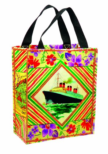 Tote your cargo in this funky little bag. Vintage ship adorns both sides. Made from 95-percent post-consumer recycled plastic and printed with lead free inks. Blue Q's handy totes are perfect for toting your lunch to work or a reusable gift bag. Printed on the inside for a little extra delight.